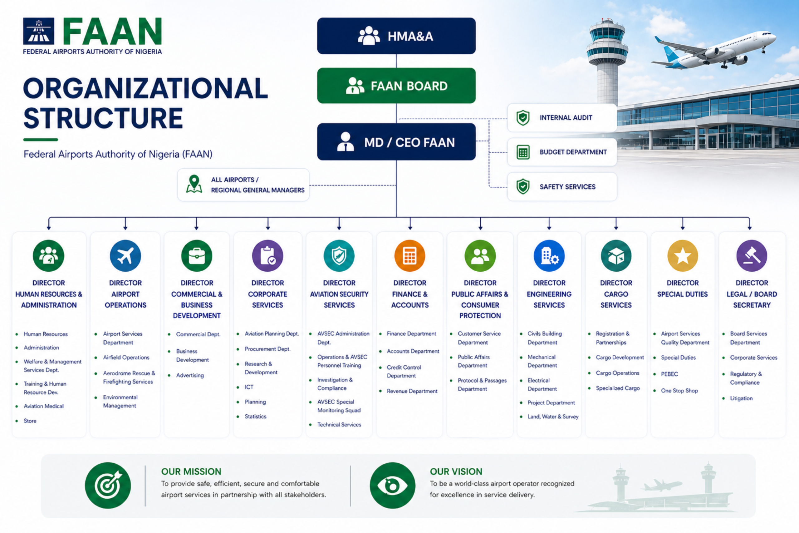 Our list of Directorates and Departments in FAANManaging Director